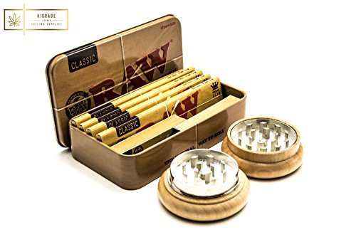 Raw Tabakdose und 55 mm Tabakmühle aus Holz.